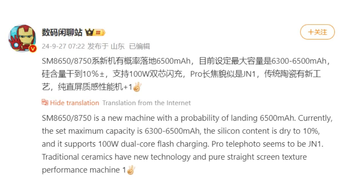 According to a Weibo post by tipster Digital Chat Station (translated from Chinese), the OnePlus Ace 5 series phones may carry 6,500mAh batteries. The OnePlus Ace 5 and Ace 5 Pro are tipped to support 100W wired charging as well. ![]()