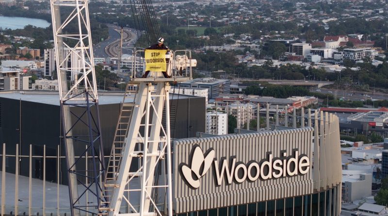 Greenpeace activists protesting Woodside’s oil and gas operations have scaled a 140-metre crane alongside the company’s Perth headquarters.Source – Theage