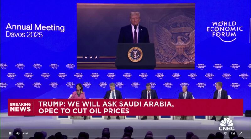 Speaking via video to an assembly of global leaders at the World Economic Forum in Davos, Switzerland, the new president in a wide-ranging policy speech did not mention the Fed by name but made clear he would seek lower rates.