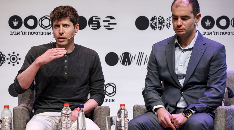 Sam Altman (L), US entrepreneur, investor, programmer, and founder and CEO of artificial intelligence company OpenAI, and the company’s co-founder and chief scientist Ilya Sutskever, speak together at Tel Aviv University in Tel Aviv on June 5, 2023.