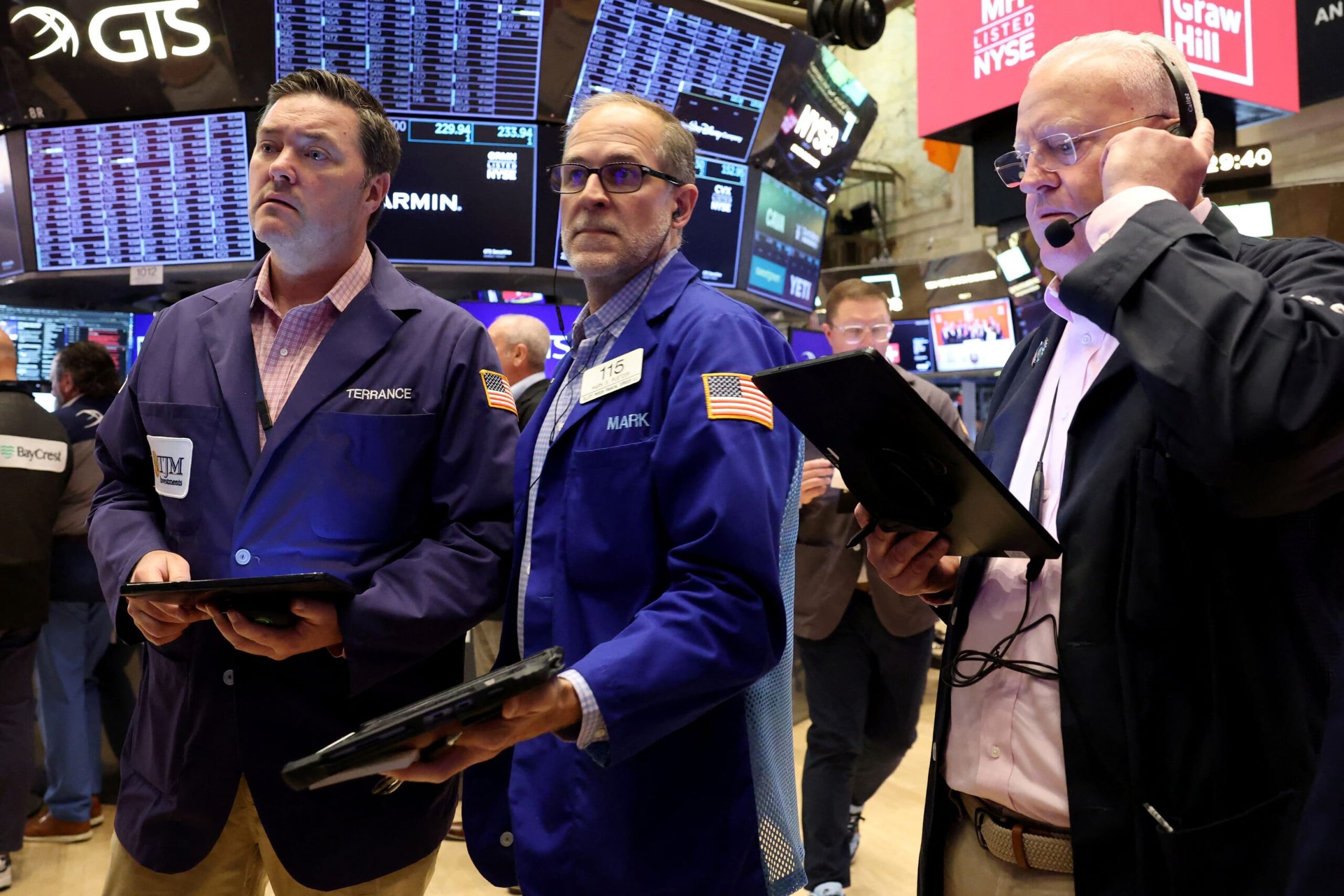 A trader works on the floor at the New York Stock Exchange in New York City, U.S., July 24, 2025.