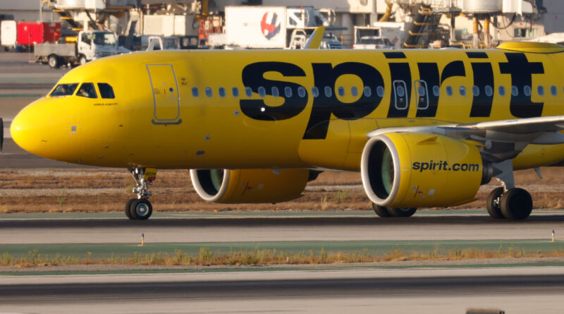 A Spirit Airlines Airbus A320 taxis at Los Angeles International Airport after arriving from Boston on September 1, 2024 in Los Angeles, California.
