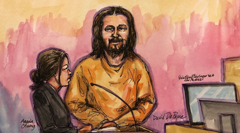 David Wayne DePape appears in San Francisco Superior Court for a preliminary hearing on state charges over the attack on Paul Pelosi, husband of U.S. Speaker of the House, Nancy Pelosi, in San Francisco, California, November 15, 2022 in a courtroom sketch.