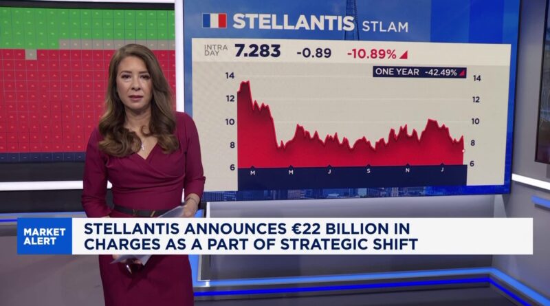 Shares of automaker Stellantis plunged 27% in European trading on Friday, after the company said it expects to take a 22-billion-euro ($26 billion) hit from a business reset and hinted at a pull-back from its electrification push.