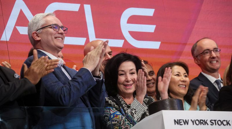 Safra Catz, CEO of Oracle Corporation, rings the opening bell at the New York Stock Exchange (NYSE) in New York City, U.S., July 12, 2023.