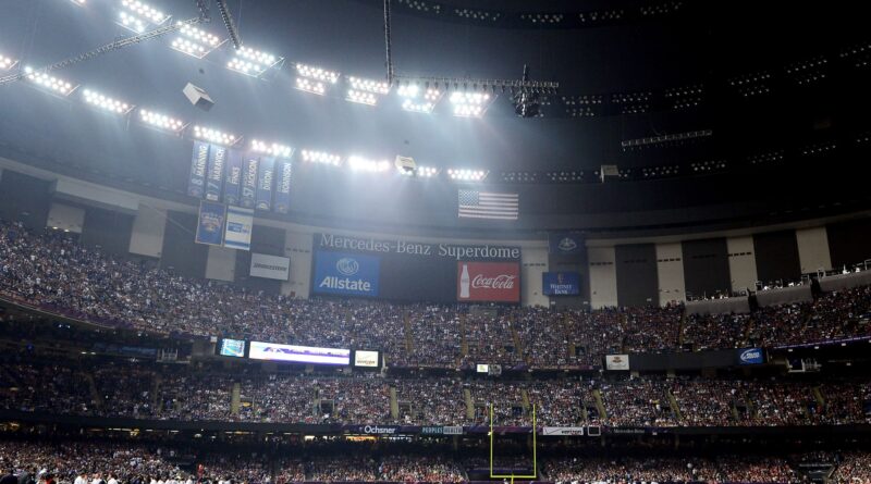 The Mercedes-Benz Superdome after a sudden power outage during Super Bowl XLVII. The stadium is now known as the Caesars Superdome.