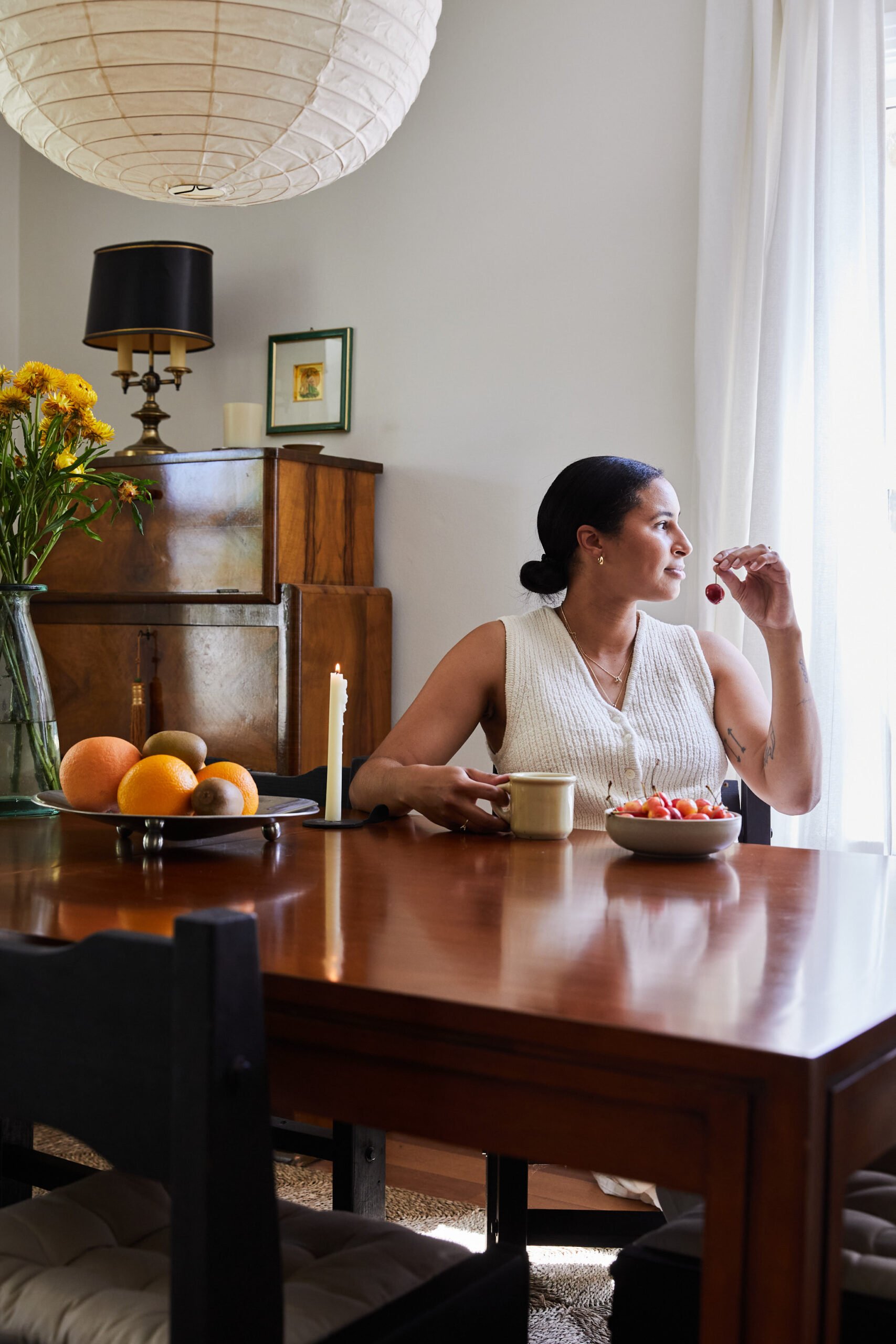 On learning to thrift: Our family had a pretty fixed budget, so I grew up thrifting for clothes and furniture with my mom. Sometimes it felt embarrassing. All the other kids at school were wearing Abercrombie & Fitch, and I would have styles from Goodwill. But now I’m proud that I’ve developed the muscle to go into a store and seek out unassuming pieces that can work in our lives.