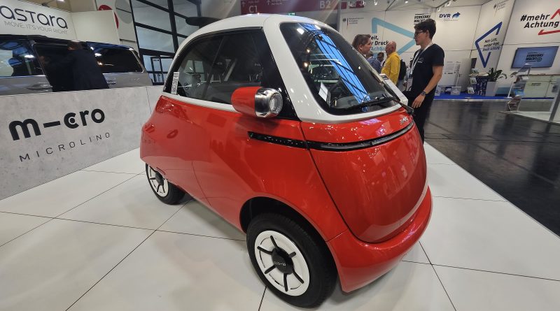 At the IAA, Swiss firm Micro showed off its Microlino, a small battery-powered vehicle.