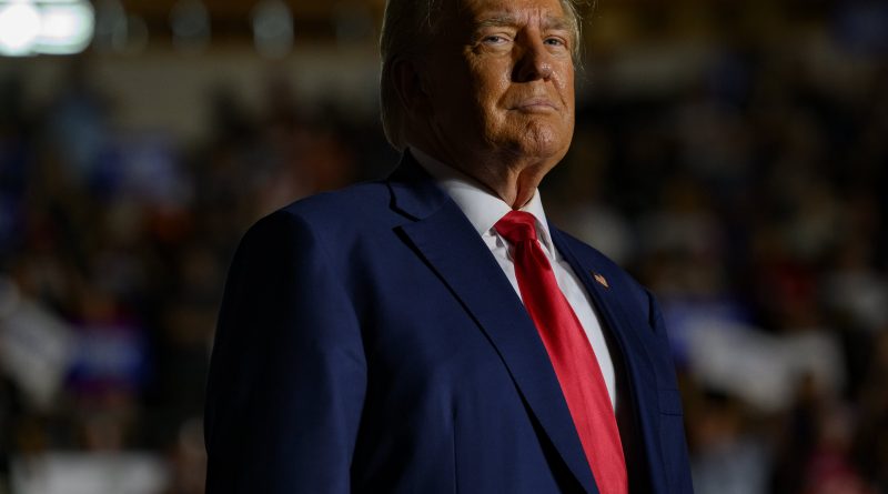 Former U.S. President Donald Trump enters Erie Insurance Arena for a political rally while campaigning for the GOP nomination in the 2024 election on July 29, 2023 in Erie, Pennsylvania.