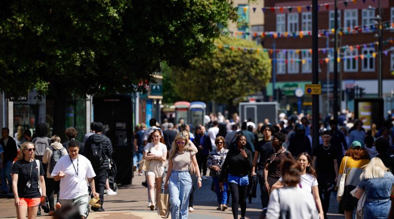 Shoppers on the high street in the Kingston district of London, U.K.