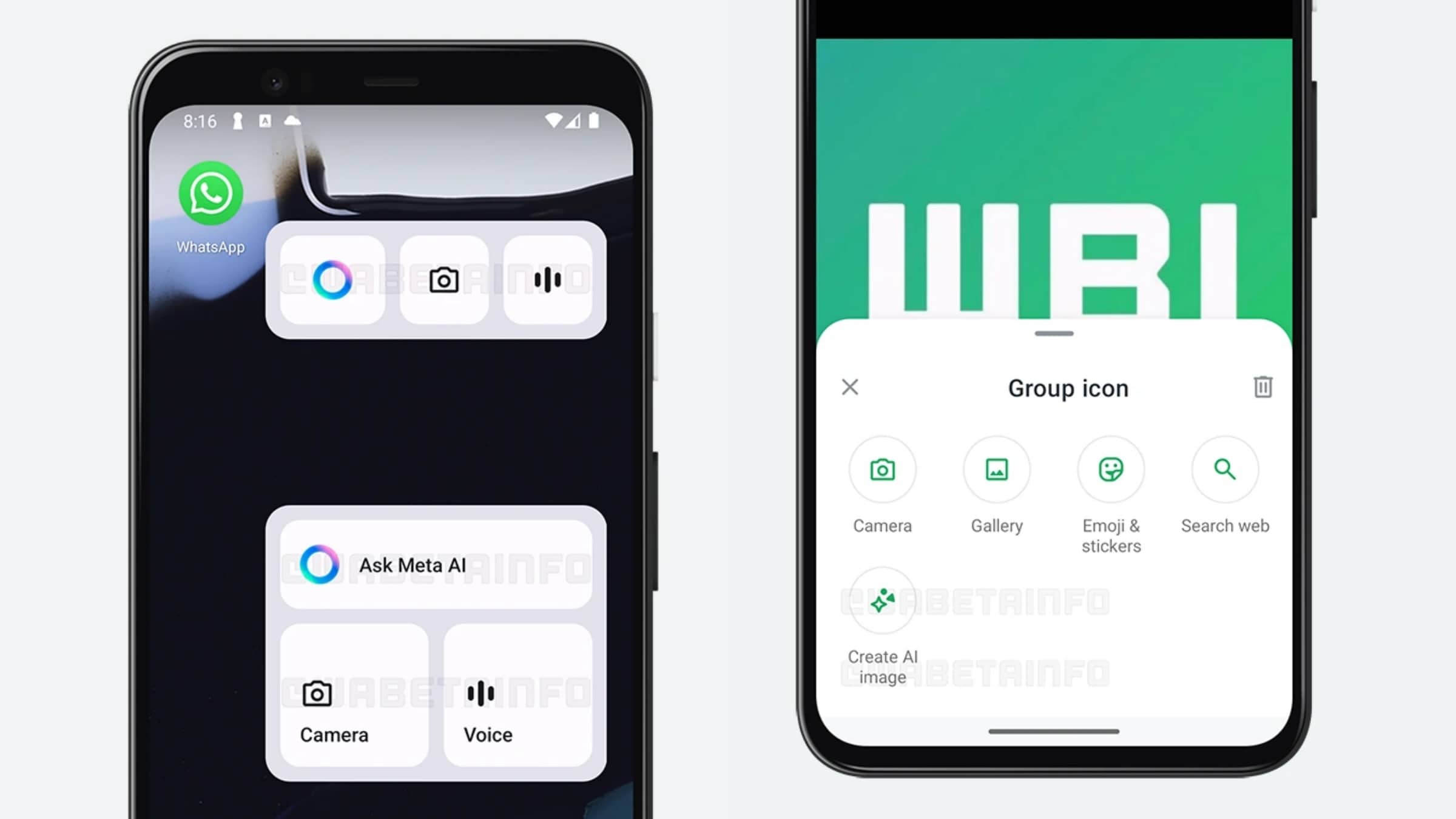 Meta AI widgets (left) and AI-powered group icons