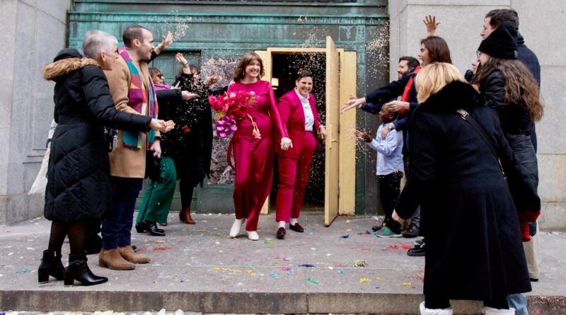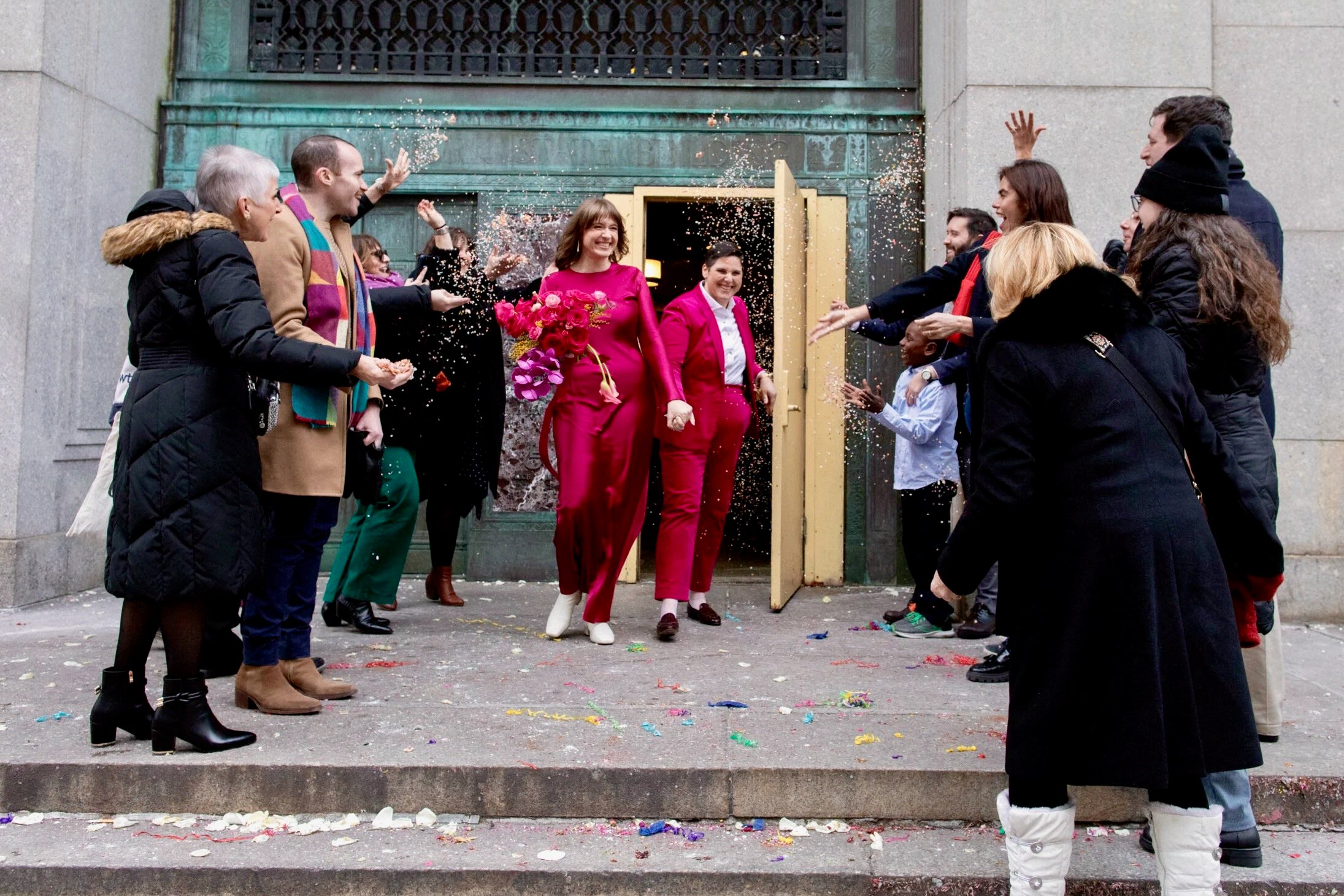 Eryka: We were planning to get married in August 2026 in the lake town where Rachel grew up, but after the 2024 presidential election, we felt it was important to get our ducks in a row before the inauguration in January 2025. We had two months.