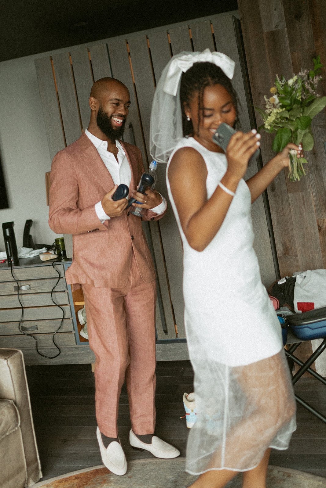 “Once we decided to elope, we felt like all bets were off when it came to wedding traditions. We invited only our best friends, and I decided to wear a short dress.”