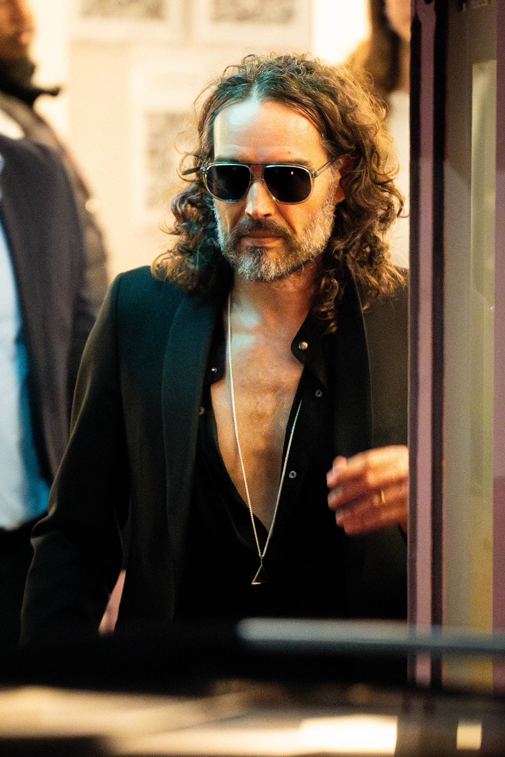 Russell Brand leaves the Troubabour Wembley Park theatre in north-west London after performing a comedy set on Saturday September 16, 2023. He faces claims about his sexual behaviour at the height of his fame. He has vehemently denied the allegations.